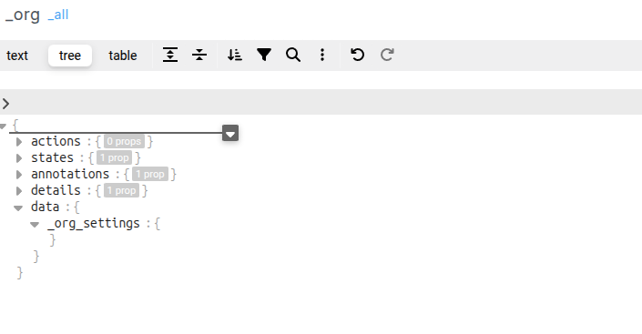 Once in the all context, open the JSON editor to edit the template data for the _org template.