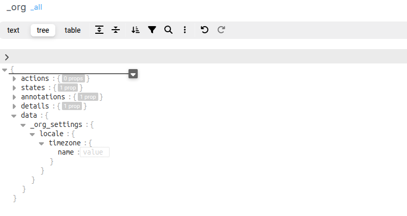 Within _org_settings add a new locale object and within that add a timzone object with a name key