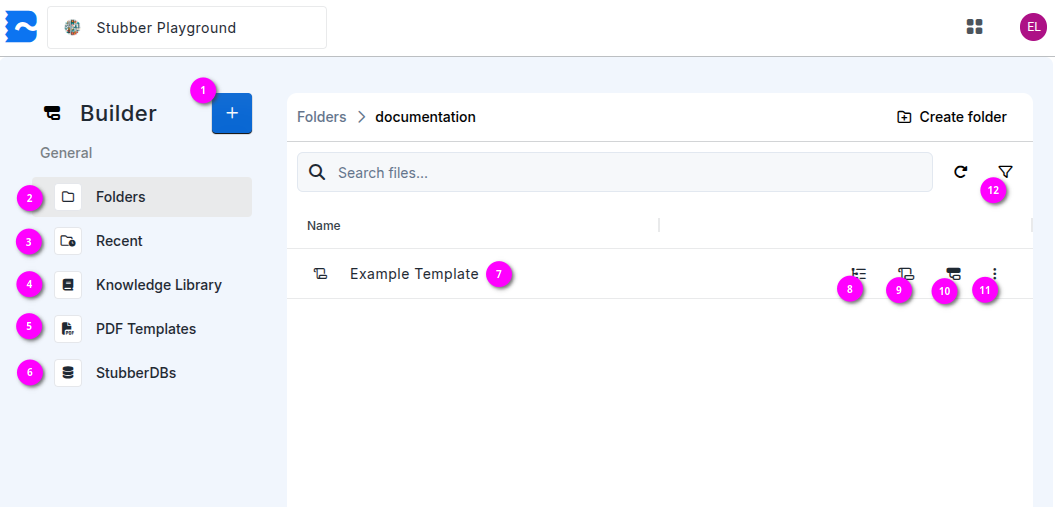 The builder is where you will manage your all of your organizations templates, their contexts and most importantly, the template flow itself.