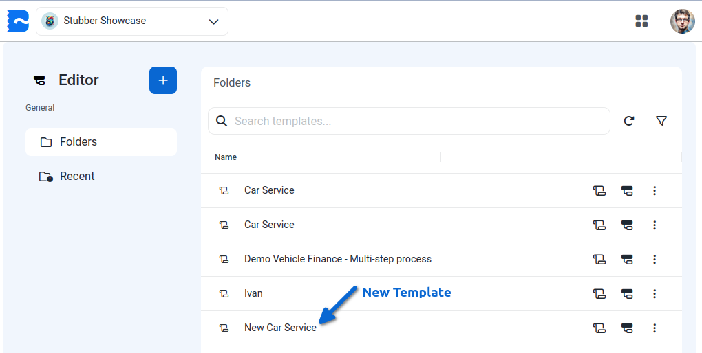 New Template in the Template List: