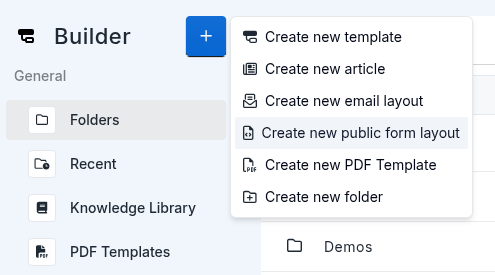 Layouts are managed from the editor under Public Form Layouts. To create one, open the drive and create a new Public Form Layout file.