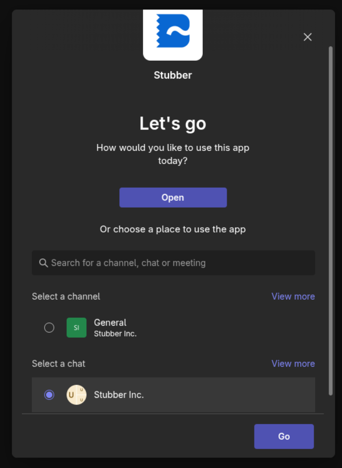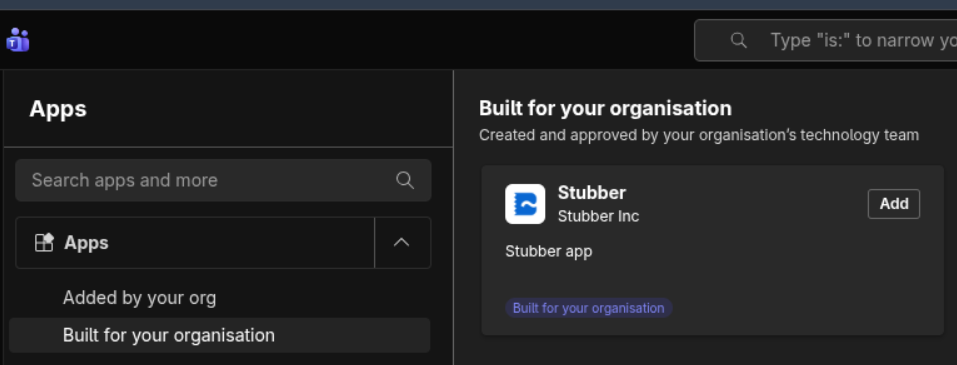 Upload and install the Stubber app manifest to Microsoft Teams