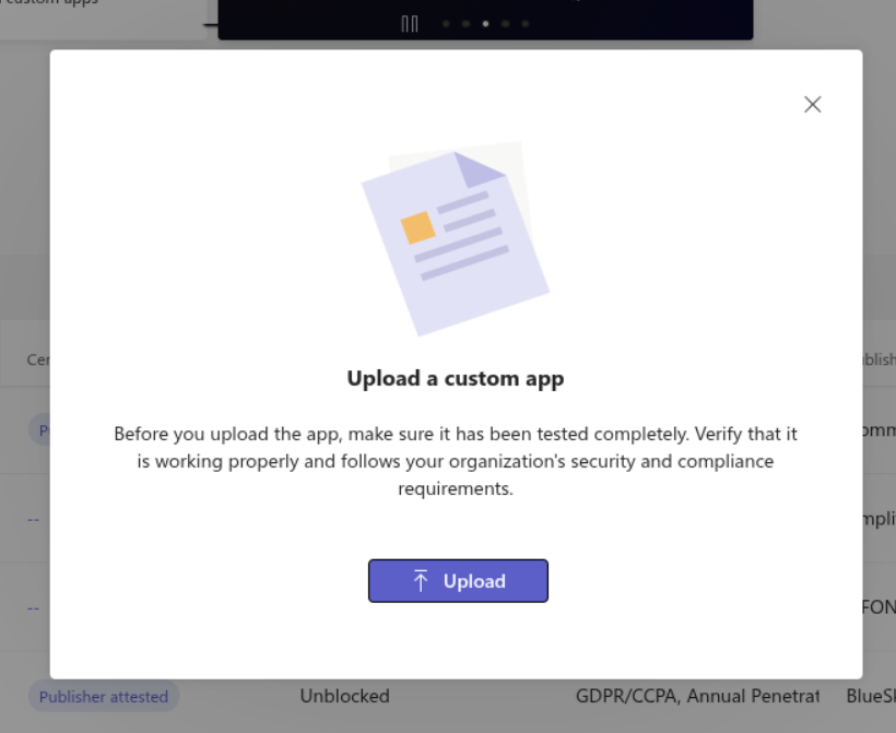 Start the app upload process in the Teams Admin Center: